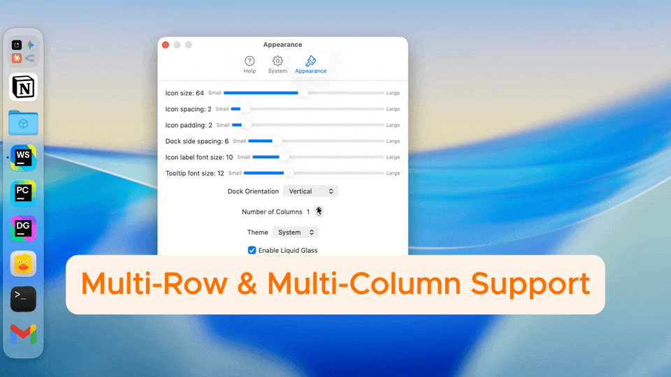 Adjust appearance and behavior to create a dock that feels truly yours.
